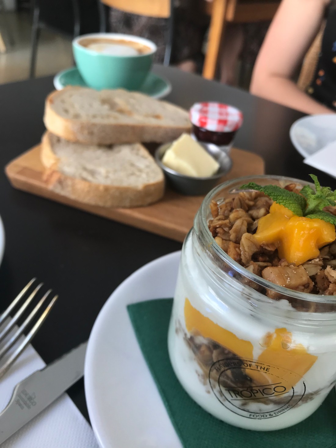 En realidad trópico es más un brunch que un lugar para desayunar, y prueba de ello es sus famosos platos calientes que traen de todo.
