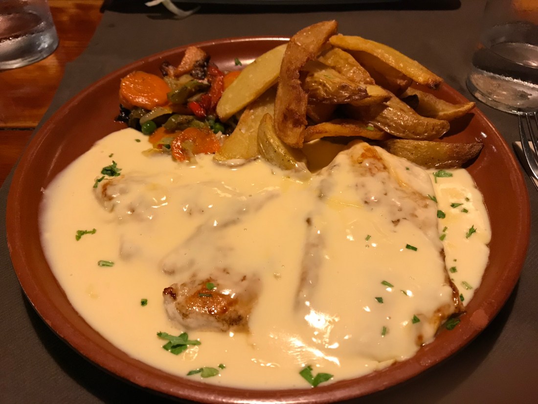 ➊ ➌ Pollo al queso de Mahón 🍗🧀🥔 (11,50€): Probar el queso de Mahón fue lo único que mereció la pena, aunque desmejoraba bastante con la bechamel con la que hicieron la salsa…