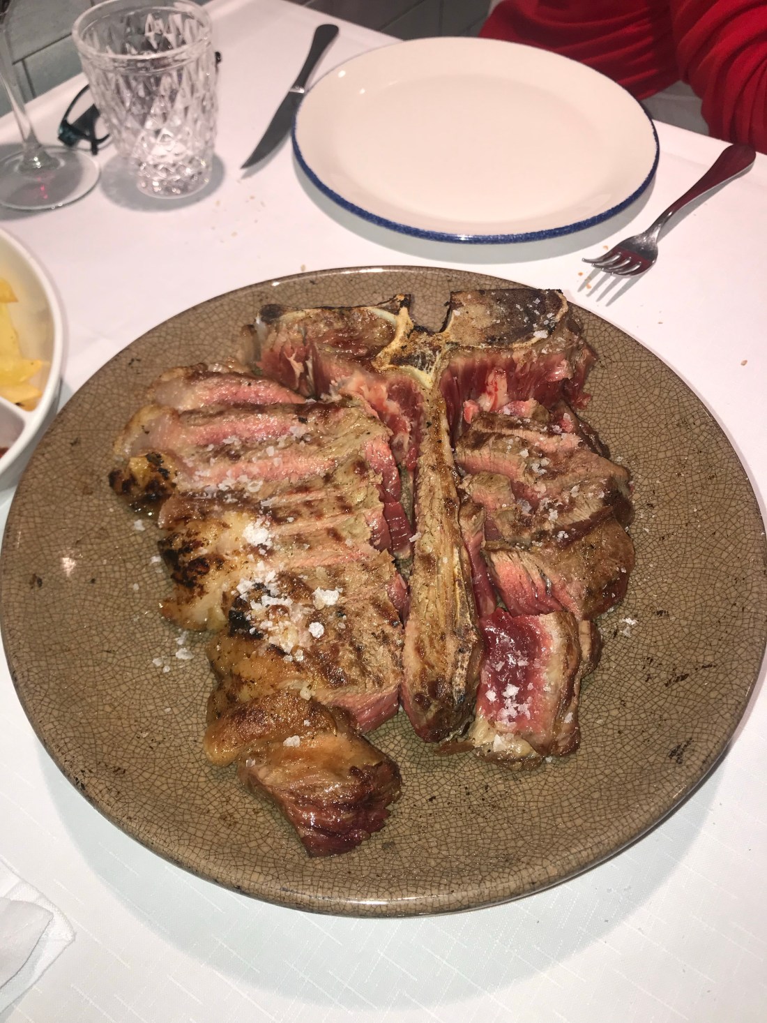➊ ➋ T-Bone 🥩 (50€/kg): Os vuelvo a traer uno de mis platos preferidos, el T-bone (mitad solomillo, mitad entrecot). Este en concreto de vaca Iruki con su guarnición de patatas 🥔 y pimientos 🌶