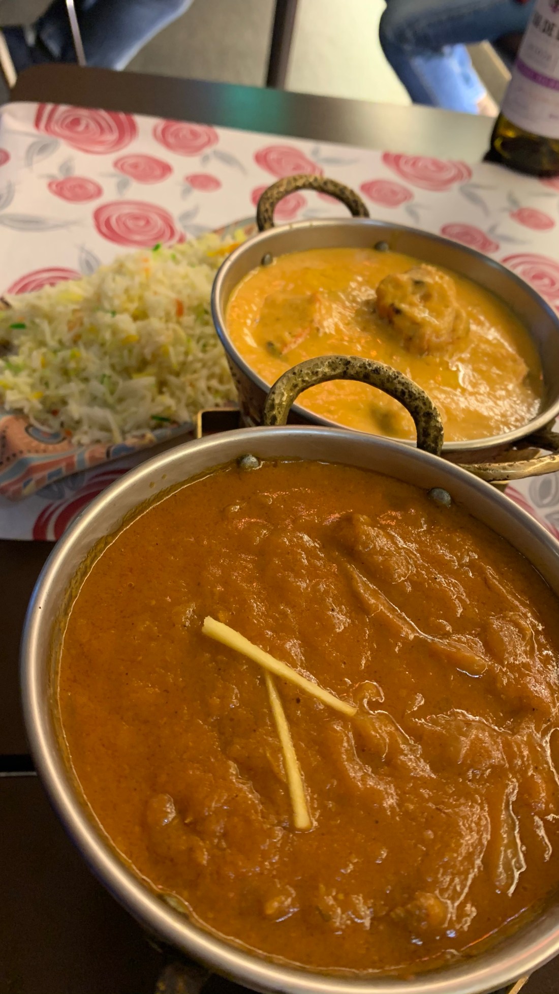 La carta 🍽, al igual que en otros restaurantes hindús, es complicada de descifrar, pero que con ayuda del personal se consigue entender. Esta se divide en varios aperitivos hechos con verduras, diversos platos hechos al horno tandoori, y diferentes carnes mezcladas con salsas distintas de curry (fotos ➆ ➇ ➈). Concretamente yo me quedo con el curry de pollo antes que con el de ternera, que me pareció demasiado fuerte, junto con la salsa de “murgh muglai” de leche, nata y jengibre ✅