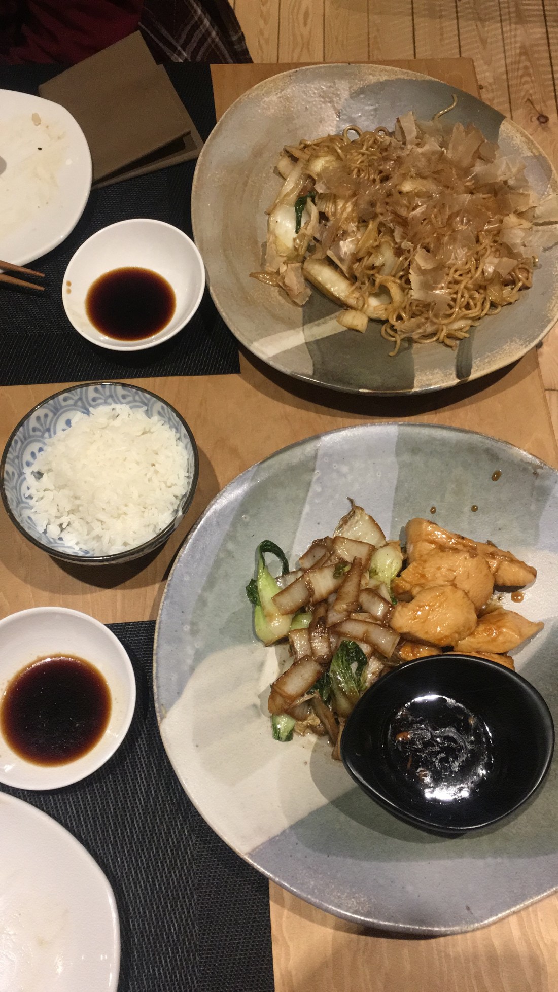 -Yakisoba de pollo 🍝🍗: Fideos de huevo salteados con vegetales y pollo.