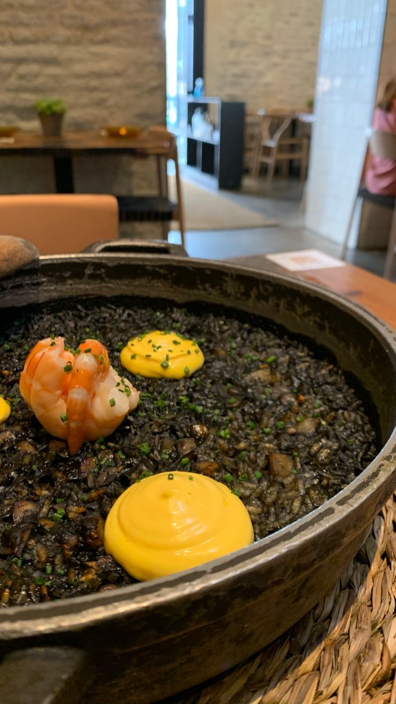 ➀ ➁ ➂ Arroz negro con ali oli de azafrán (21€): Arroz en su punto, con un ali oli que le daba esa cremosidad al arroz. Como podéis ver la cantidad era generosa por un buen precio.