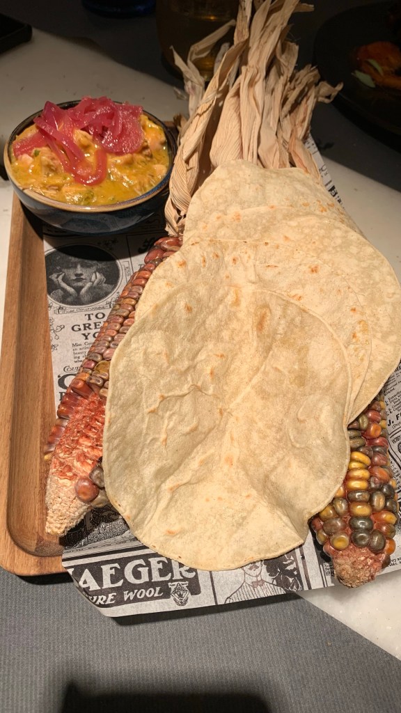 ➎ ➏ Taco-talo de pollo 🌽🍗 (16€): Guiso de pollo de caserío, cebolla encurtida, carbonara de puerros. Sencillamente INCREÍBLE!!! 💯