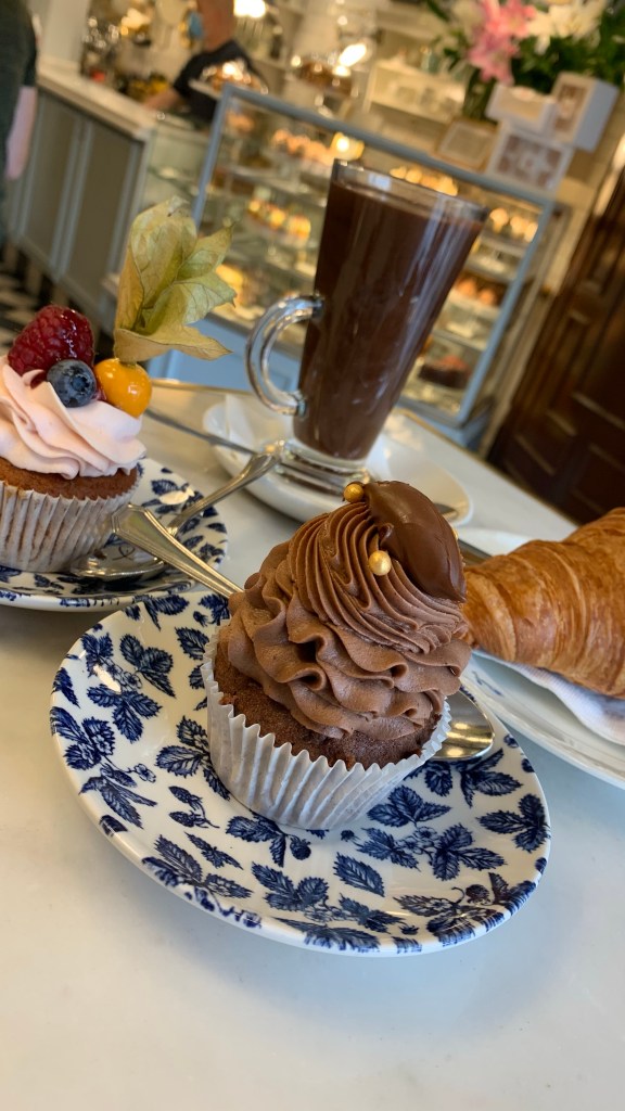 El sitio está decorado con cientos de cristales y las vitrinas llenas de cupcakes 🧁 de todos los colores posibles ➁ ➂ ➃ ➄ ➅