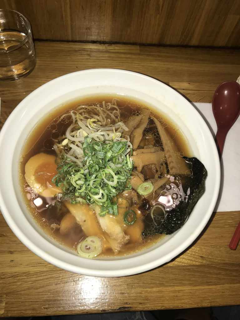 ➊ ➋ Shoyu ramen 🍜🌾 (10,20€): Elaborado con caldo de carne, sazonado con salsa de soja y acompañado por huevo, tokatsu (panceta 🐖), brotes de soja, bambú, cebolla y alga nori.