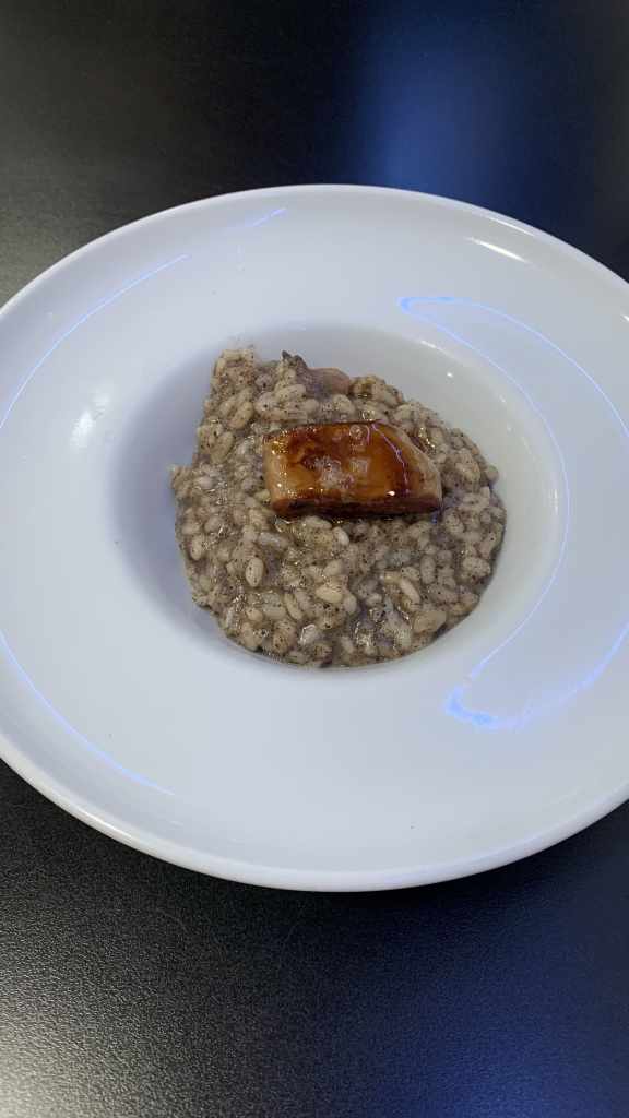 ➀ Arroz trufado con foie 🍚🦆 (4.50€): Acompañado de una lasca de foie a la plancha y una reducción de carne.