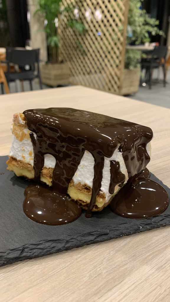 ➒ ➓ Milhojas de merengue y yema tostada 🍫 (4,50€): Acompañado por chocolate caliente para echarlo al gusto 🤤 Acierto total 👌🏽