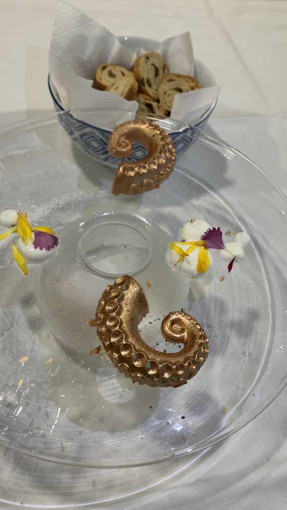 🍽 Trabajan únicamente con 2 menús, el Menú degustación normal (38€) ➃ y el Menú degustación de noche (35€) ➄, ambos con especialidades costeras 🐙